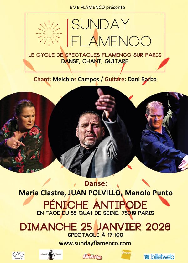 avec le danseur sévillan reconnu internationalement Juan Polvillo et Maria Clastre (danse), Manolo Punto (danse), Melchior Campos (chant), Dani Barba (guitare).