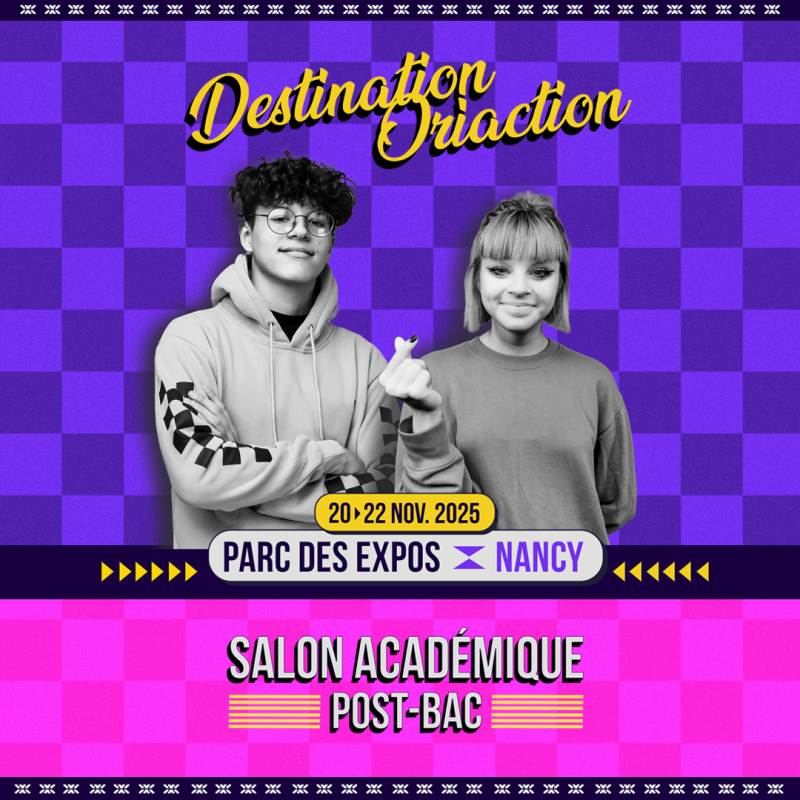 Le Salon Oriaction ouvrira ses portes pour sa 34ᵉ édition, du 20 au 22 novembre 2025, au Parc Expo de Nancy ! Organisé par l'académie de Nancy-Metz, l'Etudiant est partenaire de cet événement incontournable de l'orientation en région Grand Est, conçu pour informer, accompagner et guider les lycéens et les étudiants dans la construction de leur avenir. Partageant la mission commune d'accompagner les jeunes vers une orientation réussie, nous serions heureux de pouvoir compter sur votre soutien pour partager cet événement auprès des jeunes et de leur famille.