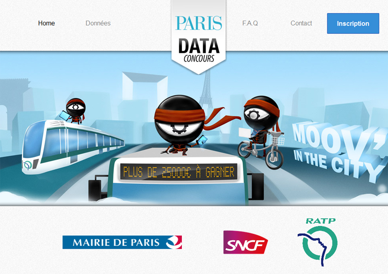 5 grands acteurs de la mobilité à Paris et en Île-de-France annoncent l’ouverture du concours “Moov’In The City”. A partir des données ouvertes par l’ensemble des partenaires, les participants disposent de deux mois pour créer des services web, des applications mobiles et des datavisualisations facilitant les déplacements au quotidien. Grâce aux dernières données mises à disposition, tous les grands modes de transport (métro, train, vélo, RER, bus, tramway, etc.) pourront être combinés, pour améliorer l’information des voyageurs, la fluidité des correspondances, la réactivité face aux incidents tout en limitant la pollution et en améliorant, in fine, la qualité de vie des Parisiens et Franciliens dans une ville en mouvement.