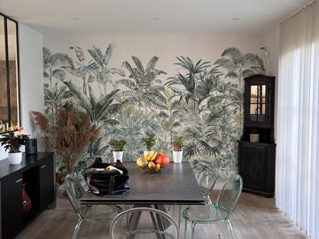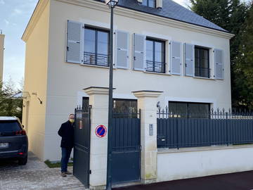 Grande chambre en demi sous-sol avec salle de bain privative (double vasque, douche à l'italienne, W...