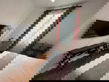 Chambre cosy, lumineuse et fonctionnelle de 14 m2 située dans une maison à l'Île Saint-Denis, près d...Equipements classiques : Chauffage, Tv, Penderie, InternetEquipements supplémentaires : Bureau / Table