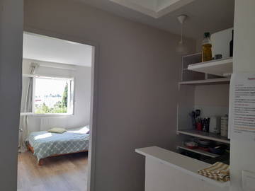 Jolie petite chambre avec kitchenette, et salle de bain à partager, offrant une vue sur le jardin, d...