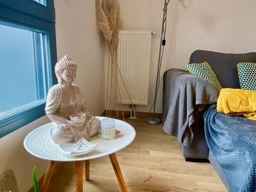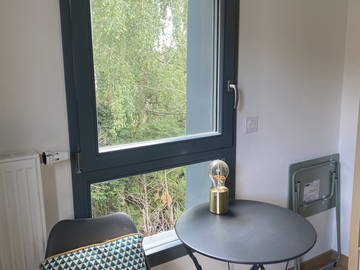 Une chambre avec deux fenêtres offrant une vue sur la verdure. Cette chambre, charmante et située da...Equipements classiques : Penderie, InternetEquipements supplémentaires : Fer à repasser, Cintres, Bureau / Table
