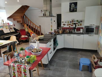 Chambre spacieuse avec salle de bain et toilettes partagées, ainsi qu'une cuisine.La chambre est p...