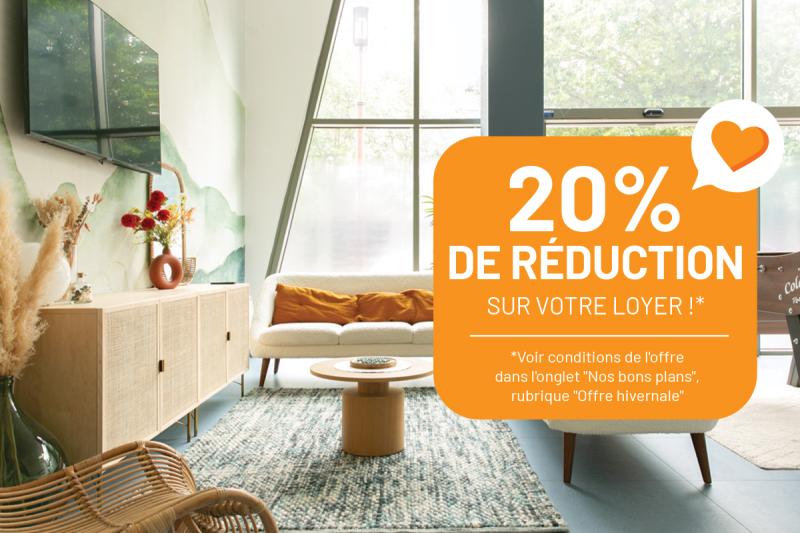 20% de réduction sur vos trois premières quittances ! Réservez votre appartement dès maintenant ! Offre valable pour tout contrat de location signé entre le 10/02/2026 et le 23/04/2026 inclus et ayant une date de prise d’effet antérieure au 23 avril 2026 inclus. Toutes les conditions de cette offre sont à retrouver dans la rubrique VOTRE LOGEMENT > NOS BONS PLANS SIMPLIFIEZ VOS SEJOURS DE COURTE DURÉE ! PROFITEZ D’UN APPART’ MEUBLÉ, EQUIPÉ ET CONNECTÉ ! Frais administratifs OFFERTS pour la signature de tout contrat de location ferme d’une durée de 1 à 6 mois maximum débutant entre le 13/10/2025 et le 31/08/2026 inclus. Offre complète à découvrir dans la rubrique BONS PLANS