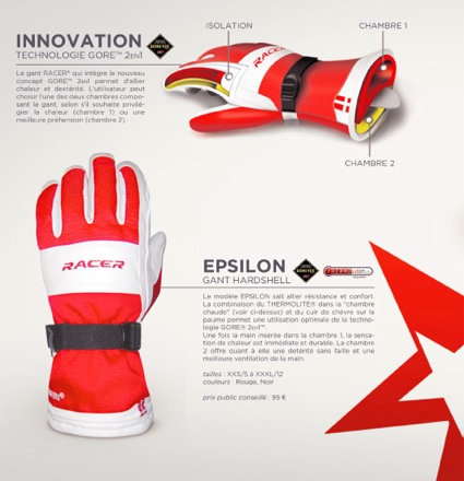 "Le gant est un accessoire indispensable pour la pratique du ski. Il se doit d'être à la fois confortable et resistant. Sa construction est relativement complexe. Elle comprend en effet, pour les gants les plus techniques, pas moins de quatre couches distinctes.